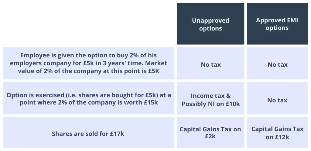 The best way to demonstrate the tax advantage of share options qualifying for EMI is through a basic worked example: